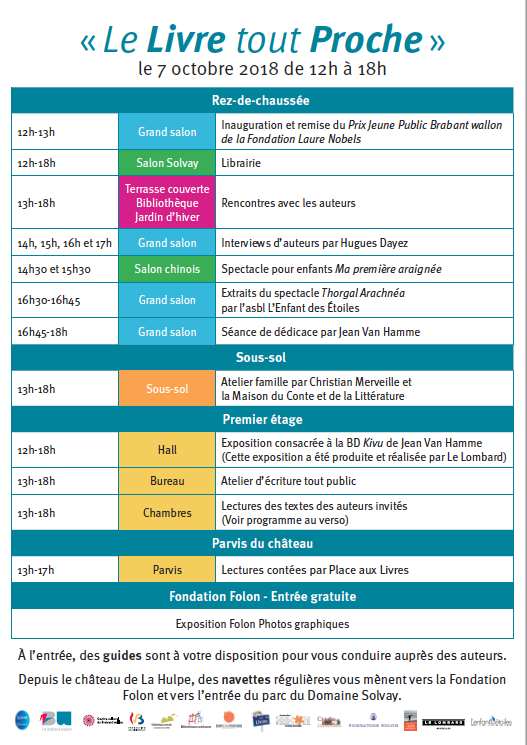 Cet événement littéraire est une initiative du Brabant wallon réalisé en collaboration avec le Centre culturel du Brabant wallon (CCBW) et plusieurs autres opérateurs culturels partenaires (Place aux Livres, Maison du Conte et de la Littérature, Fondation Laure Nobels, Fondation Folon, etc.).