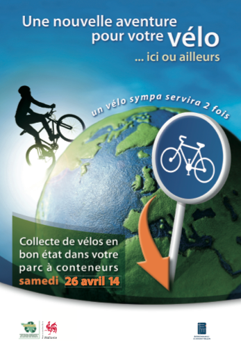 Pour les Intercommunales, cette collecte est l’occasion de sensibiliser une nouvelle fois la population à la problématique de la prévention des déchets et du réemploi : « avant de jeter, pensez à réutiliser ! ». Certains objets (vélos mais aussi jouets, électroménagers, vêtements, meubles, vaisselles,…) qui ne vous servent plus, peuvent faire le bonheur de quelqu’un dans votre entourage (famille, voisins, amis,...) ou d’écoles, mouvements de jeunesse, paroisses, C.P.A.S., associations diverses,... Pensez-y toute l’année : avant de jeter à la poubelle, avant les collectes de déchets encombrants, avant de vous rendre au parc à conteneurs,…