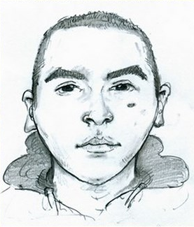 Plus ou moins 25 ans, origine étrangère, 1m65, cheveux courts et foncé, avec un grain de beauté sur la joue. Il ne parle pas français.