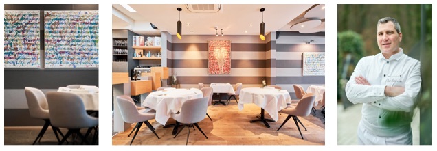 Le nouveau cadre, le chef l’a voulu soigné, lumineux et agréable. Désormais enrichie d’un comptoir très prisé où l’on peut manger avec vue sur la cuisine, la salle à manger principale accueille une vingtaine de couvertes auxquels s’ajoutent la dizaine qui auront le privilège d’occuper la salle « haute » pour une réunion ou un dîner plus intimiste avec vue sur le jardin.