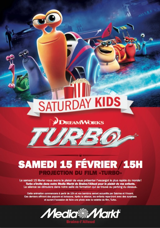 Article Samedi 15 février à 15h, projection du film "TURBO" chez Media Markt Braine l'Alleud !