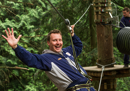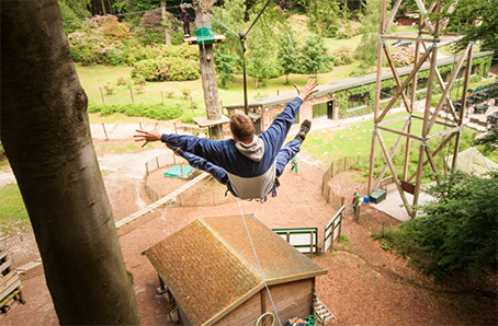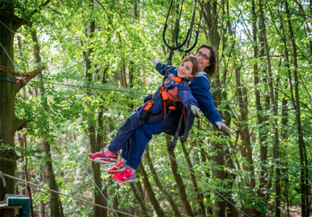 - Slalomerez à 10km/h entre les arbres pendant 320 mètres sur la Fly-Line, la première tyrolienne à virages de Belgique accessible dès 4 ans