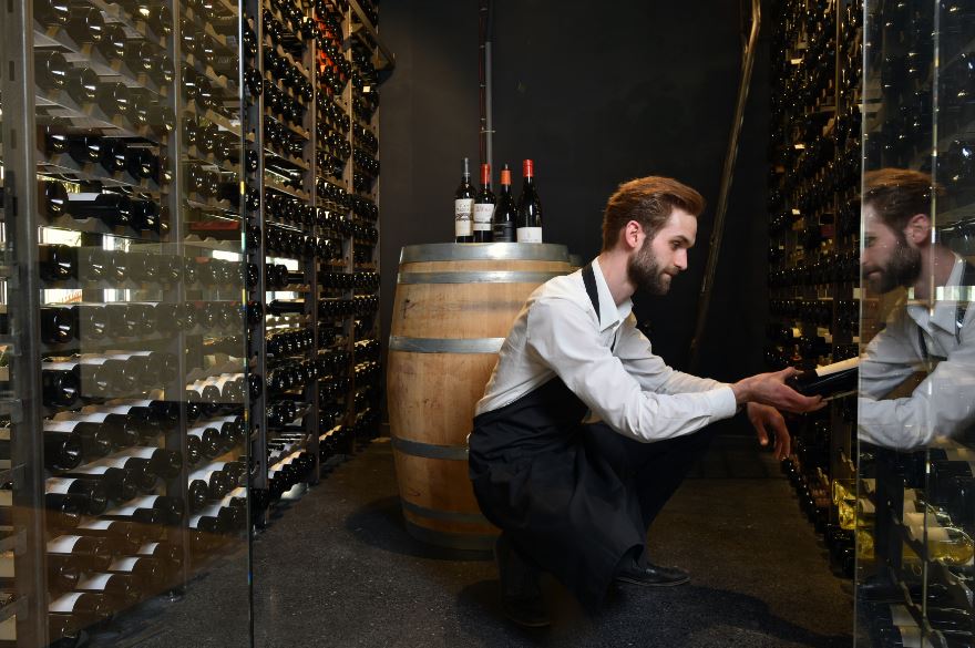 Entièrement vitrée, la cave du Di’Vino compte des dizaines de vins - dont de nombreux crus italiens- s’adressant autant aux amateurs qu’aux non-initiés.