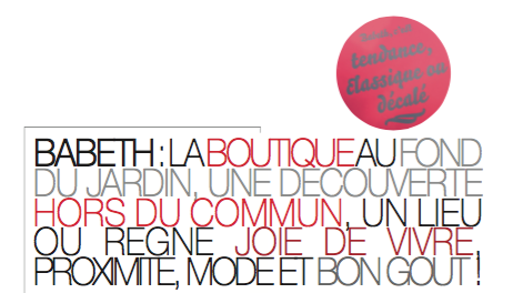 Un lieu qui semble privatif mais qui est ouvert à toutes celles qui aiment la mode. Babeth c’est aussi une page Facebook qui vous permet d’avoir un avant goût et une main mise sur les pièces qui vous font littéralement craquer. Babeth est devenue quelqu’un.