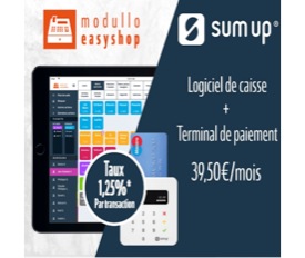 Il manquait à « modullo easyshop » la connexion avec un système de paiement mobile : ce pas vient d’être franchi grâce à un contrat de partenariat avec l’un des leaders du secteur, la société SumUp. Basée à Londres, SumUp a développé un terminal de paiement mobile qui permet aux entreprises d’accepter des paiements par carte de façon simple et sécurisée, sans frais d’abonnement.