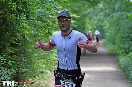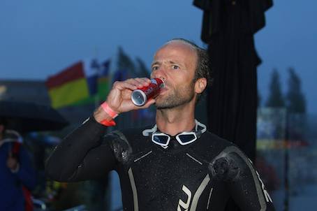 En plus de mes efforts physiques, je fais aussi de l’imagerie positive. J’en profite pour remercier mes partenaires que sont : Farniente Lasagne, Red Bull, Ginette, Castelli, Uvex, Huub, Asics, Enervit, Compress Port, … » clame avec un énorme sourire cet intrépide sportif.