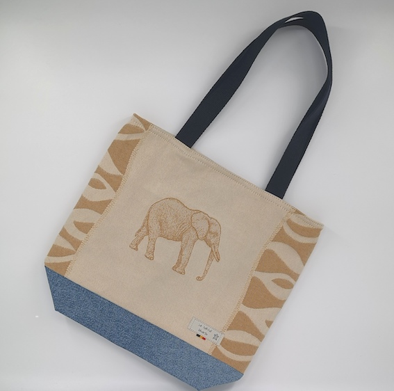 Cabas, tote bags, sacoches, besaces… il y en a pour tous les goûts dans le petit atelier. Toutes les réalisations sont en tissu recyclé, ce qui ne les empêche pas d’être impeccables.