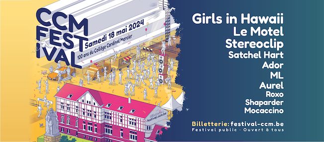 À l'occasion de son centenaire, le Collège Cardinal Mercier vous invite à un événement exceptionnel : le CCM Festival ! Le samedi 18 mai 2024, de midi jusqu'à une heure du matin, préparez-vous à vivre une journée et une soirée mémorables au cœur de la musique et de la fête.