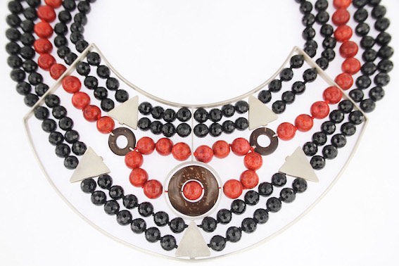 Mais ce n’est pas tout, la curiosité et l’ouverture à d’autres cultures poussent Cécile à se tourner vers des matières organiques telles que la perle, le corail mousse ou l’écorce de noix de coco, qu’elle mélange aux métaux, à l’émail et aux pierres pour des effets originaux et un style tout à fait personnel.