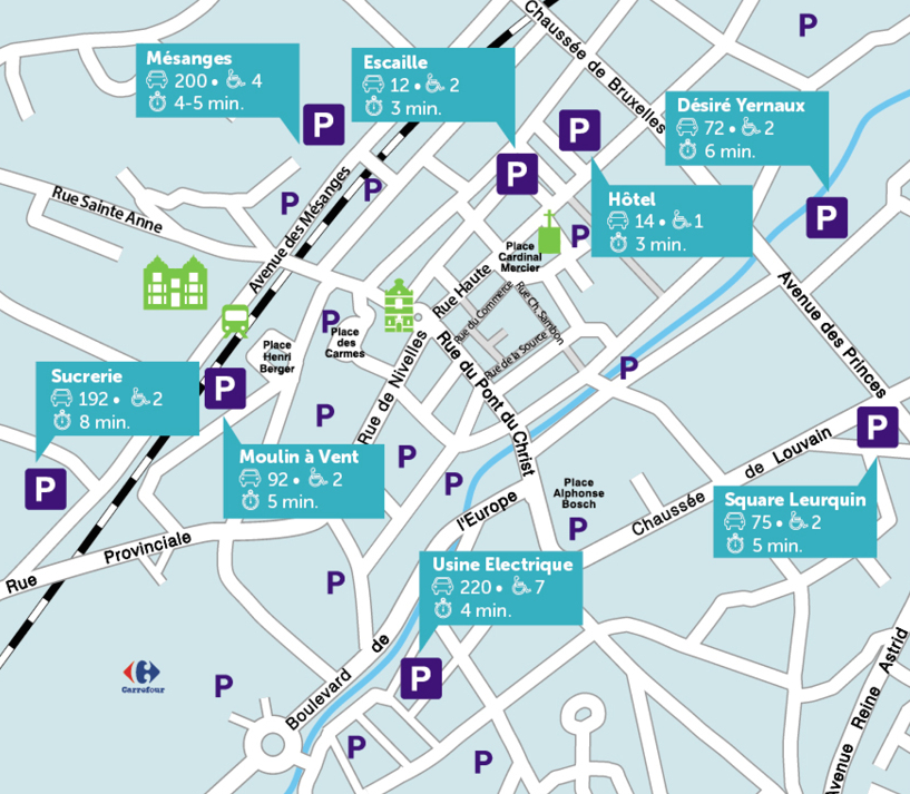 « Le parking en ville ? C’est facile et souvent gratuit ! Saviez-vous que sur les quelque 2000 places de parking disponibles à Wavre, 915 d’entre elles sont gratuites ? De quoi profiter du centre et des boutiques sans se ruiner. De plus, ces parkings se situent tous à deux pas du cœur de ville. Deux pas ? Oui. Enfin, quelques minutes à peine … mais savez-vous précisément combien ? »