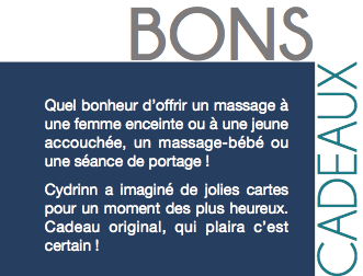 Les nouveau-nés apprécient aussi le toucher. Cydrinn propose aux parents un apprentissage en massage car elle tient à leur laisser vivre ce moment magique et privilégié. Mieux vaut un échange maman-bébé un peu maladroit qu’un massage plus professionnel, fusse-t-il plein de bienveillance.