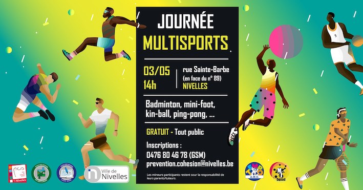 Plus d'info? https://www.nivelles.be/agenda/journee-multisports?u=c97d00aceaf147d59e2013781c93a439