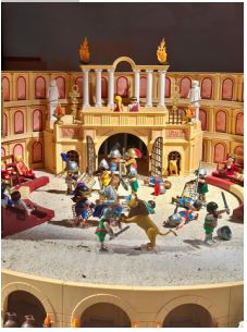 Installés dans de vastes dioramas immersifs, des milliers de figurines PLAYMOBIL font revivre les scènes emblématiques de notre passé. Dès les premières salles, le visiteur est transporté dans l’Antiquité : pyramides d’Égypte, Colisée romain, villa gallo-romaine ou encore le mythique phare d’Alexandrie. Une immersion minutieusement mise en scène pour faire revivre plus de 40 siècles d’histoire en miniature.
