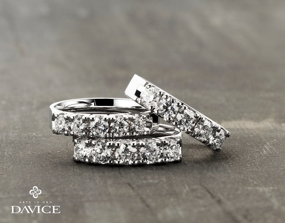 Alliances brillants et bracelets tennis by Davice: l'or ciselé sous chaque pierre, tel un miroir, sublime les feux du diamant.