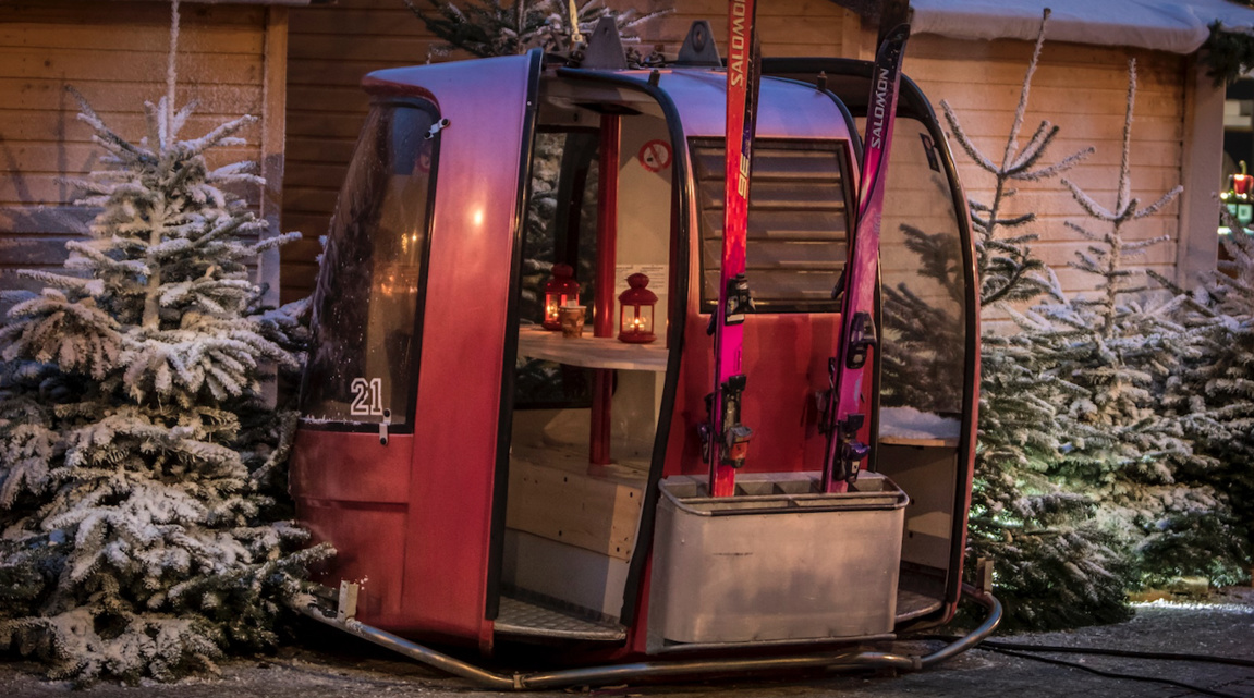 Quelques chalets sont transformés en petits salons, décorés selon un thème choisi, il y aura de grandes tables abritées sous des préaux en bois et 4 vraies cabines téléphériques dans lesquels il est possible de s’asseoir.