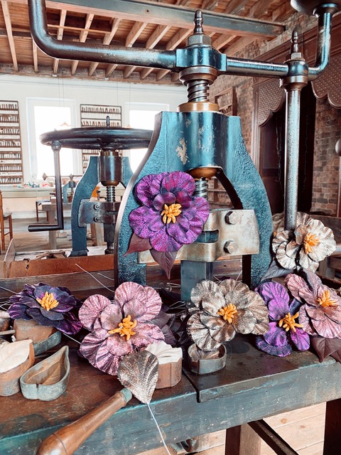 En février dernier, l’artisan créateur Bernard Depoorter et sa collaboratrice Maryse Genet ont acquis une collection unique de presses et de formes du métier de la parure florale.