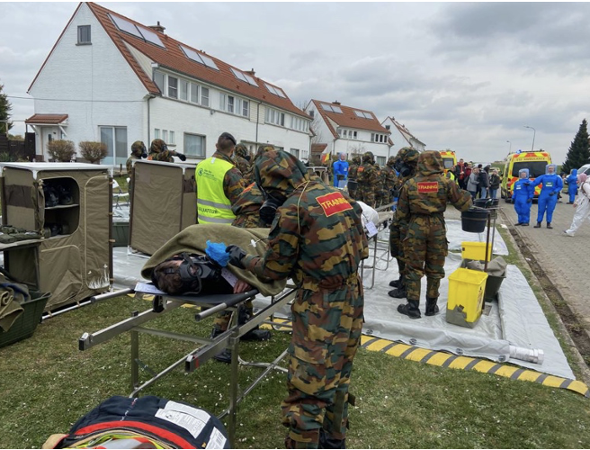 Le scénario de l’exercice du jour portait sur l’incident d’un camion-citerne à l’entrée de la base qui accueillait fictivement les visiteurs du Beauvechain Air Base Day, une journée portes ouvertes organisée afin de présenter les différentes unités sur site au grand public.