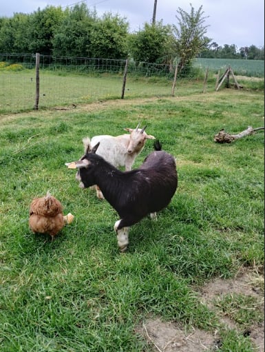 On y croise des lapins, des chèvres, des poneys, des poules, tous recueillis ou confiés, et intégrés avec soin dans les activités. Et bien sûr, il y a Simone, leur chienne aussi douce que fidèle, qui fait partie intégrante de la famille du lieu.