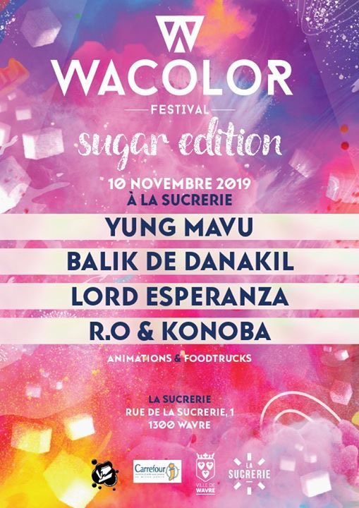 Fidèle à notre concept de festival musical éclectique (rock, rap, pop, électro…) qui a pour but de promouvoir la fête responsable, la participation sociale et citoyenne, la diversité culturelle et l’accès à la culture pour tous, le WACOLOR SUGAR EDITION se déclinera exceptionnellement cette année en indoor, sur la scène flambant neuve de La Sucrerie !