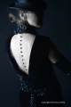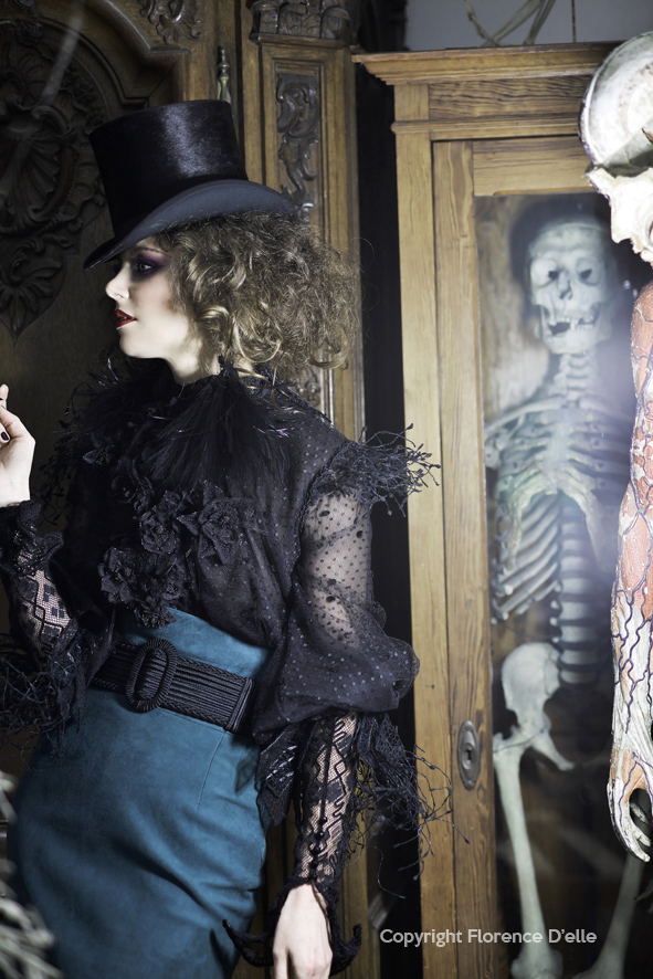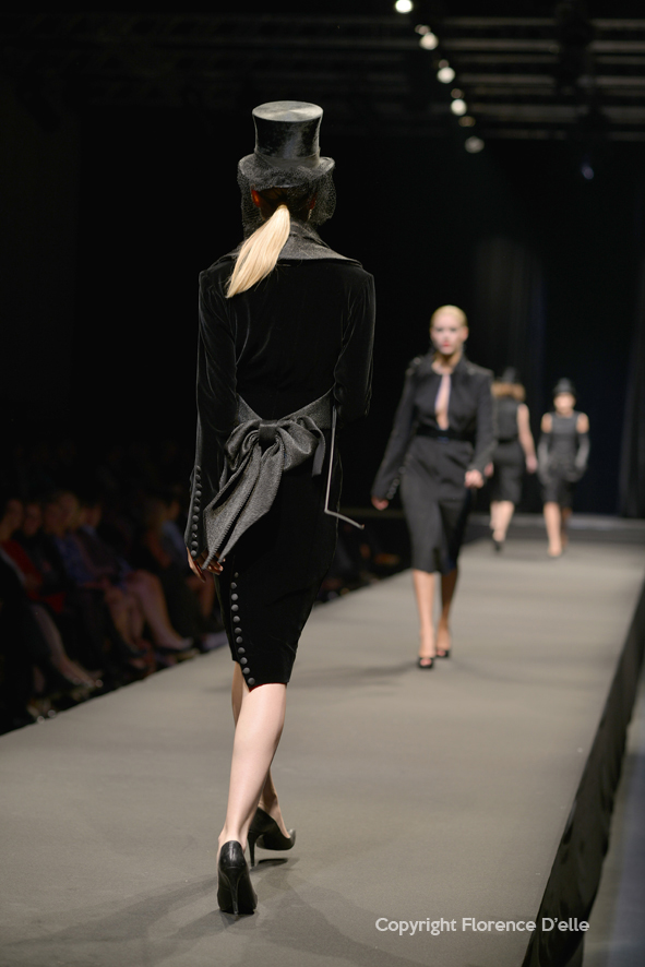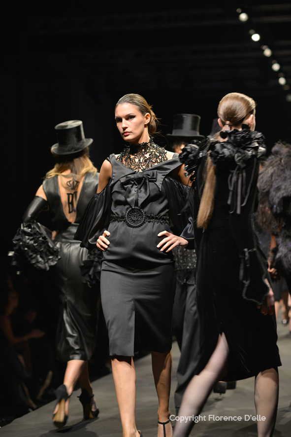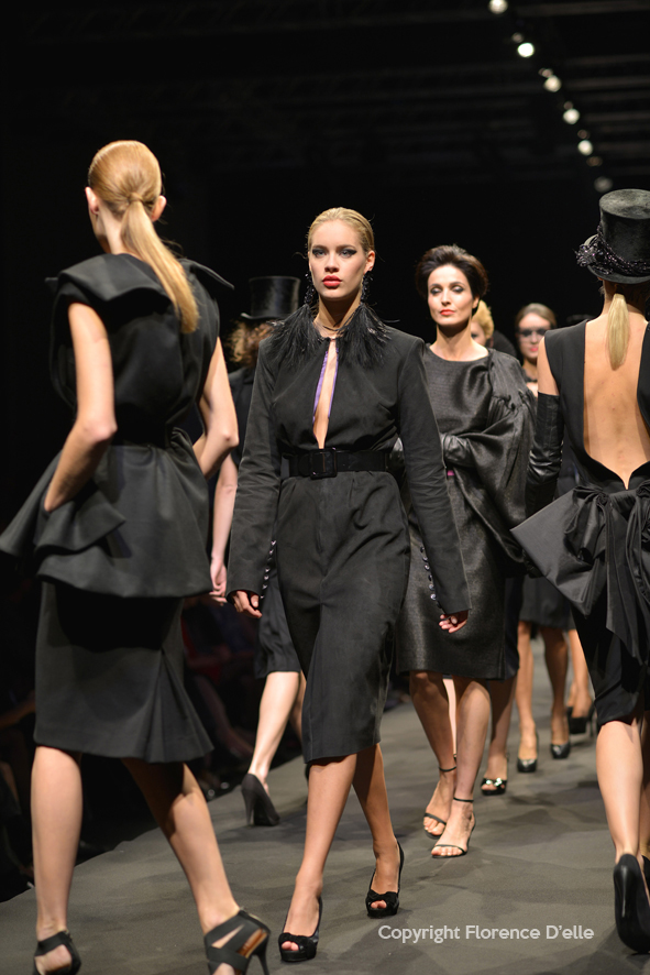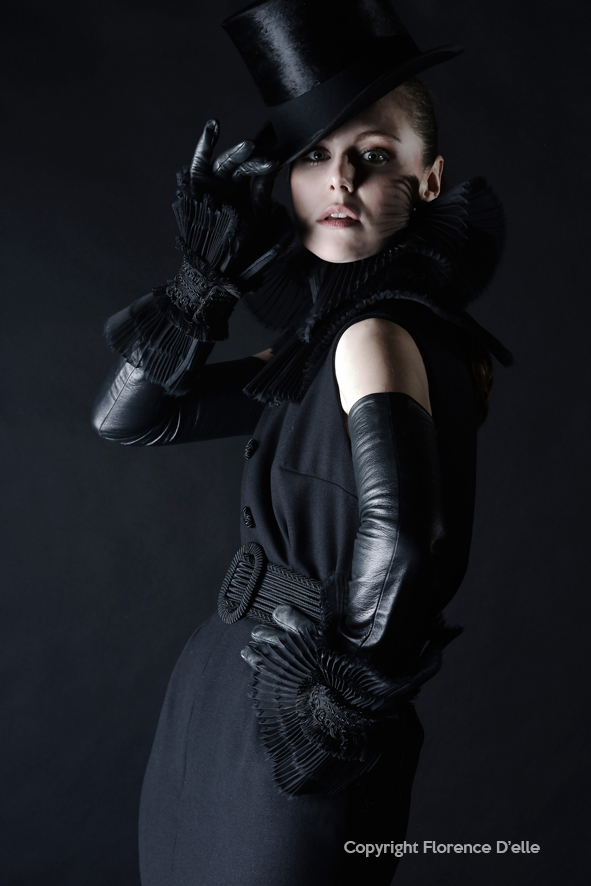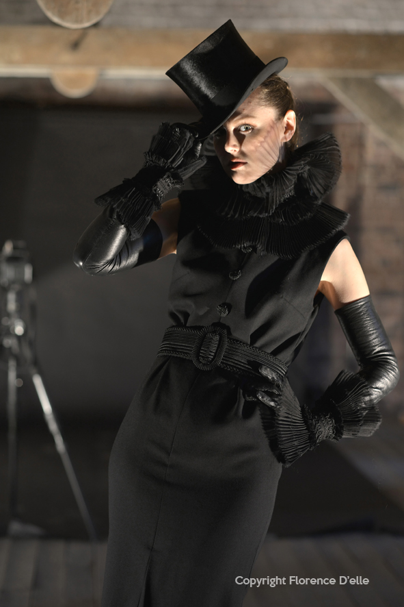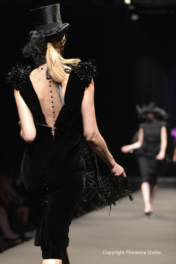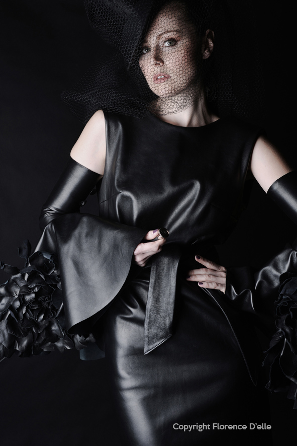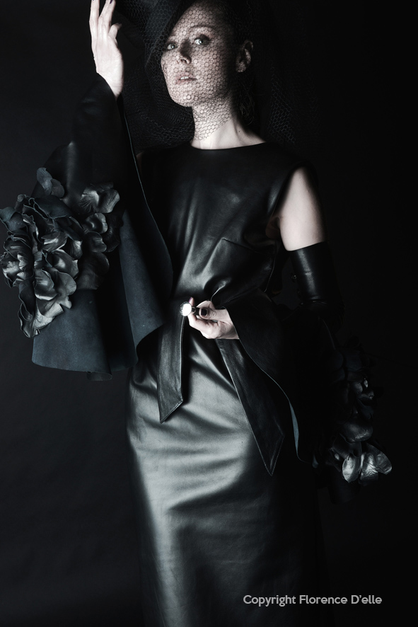 Les créations de Bernard Depoorter se distinguent par la doublure en soie de couleur violette et le noir au même titre que la rose anglaise globuleuse et fermée que l’on retrouve sur ses robes.