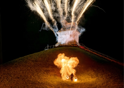 À la tombée de la nuit, place au grand spectacle ! Des artistes de feu offriront une prestation époustouflante, accompagnés de chevaux évoluant dans un ballet féerique.