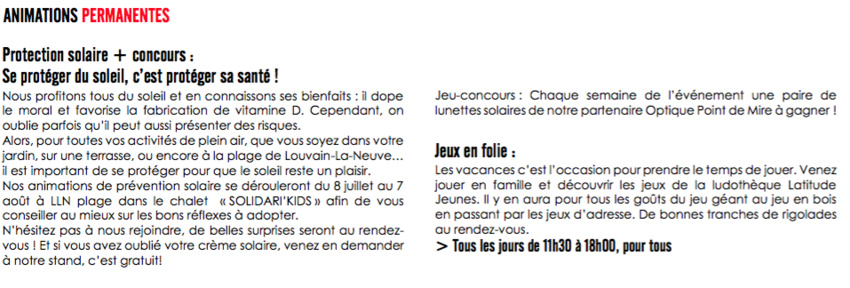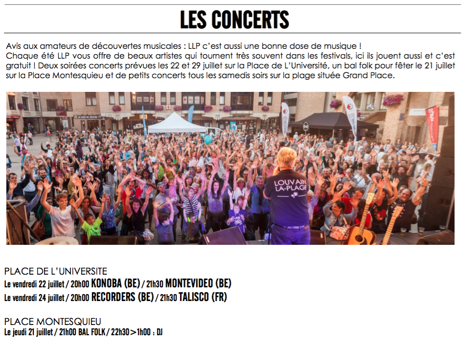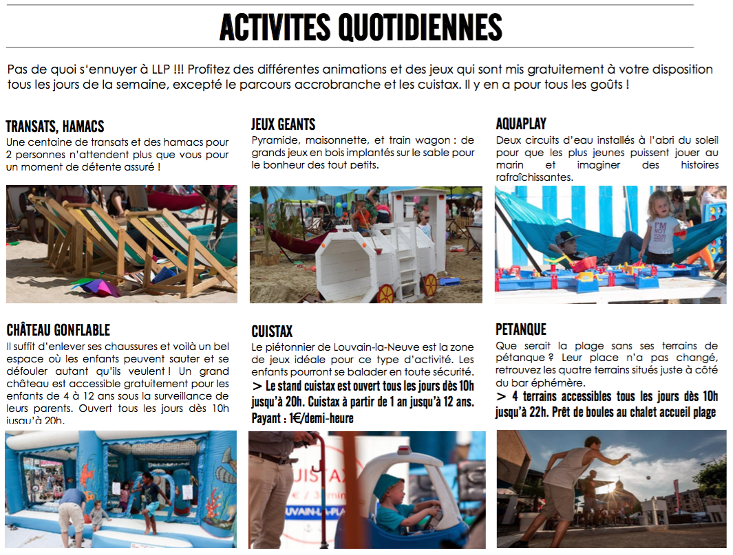 LLP revient pour votre plus grand plaisir du 8 juillet au 7 août. Une neuvième édition (déjà !) que nous espérons remplie de soleil, pleine de rires et de moments magiques à partager en famille ou entre amis. Tout est prévu pour vous permettre de passer un bon été dans un décor qui rappelle le bord de mer.