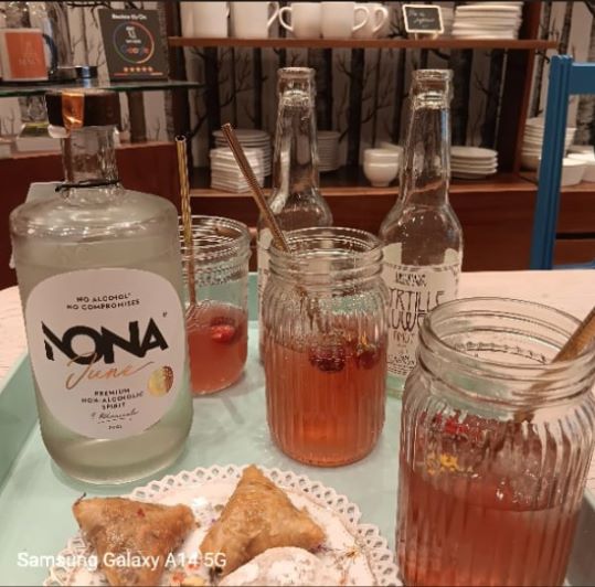 Ici vous ne verrez pas à la carte ni lasagne, ni soda, vous dégustez des en-cas et boissons avec ou sans alcool, préparées maison à base de plantes de l'herboristerie.