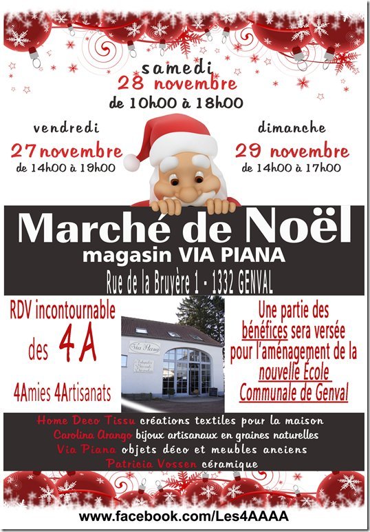 Marché de Noël le 27, 28 et 29 novembre au magasin Via PIANA à Genval