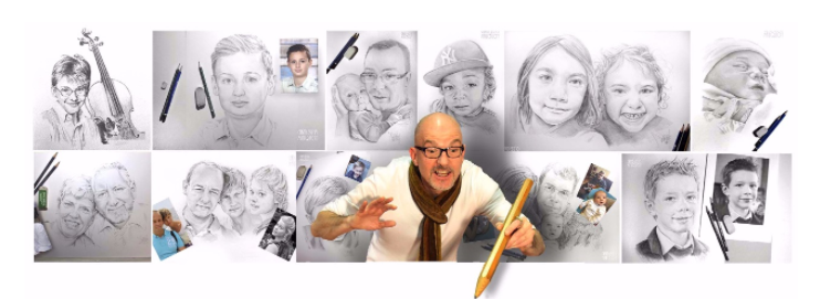 Les portraits sont réalisés à partir de photos qui me sont envoyées par mail ou par les réseaux sociaux. Les formats vont de l'A3 (42x30cm) à l'A2 (60x42cm) ou l'A1 (84,1x59,4cm) et plus sur demande.