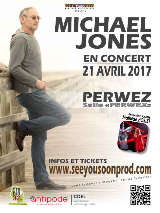 Guitariste et compagnon de route d’un des plus grands artistes de la chanson française avec son succès "Je te donne", Michael Jones nous revient avec un tout nouvel album "Au Tour De" sorti le 6 janvier 2017. Il s'agit d'un « best of » dont tous les titres ont été remasterisés. Il nous fait l’immense joie et l'honneur de venir se produire en live à Perwez le 21 avril prochain dans la nouvelle salle Perwex.