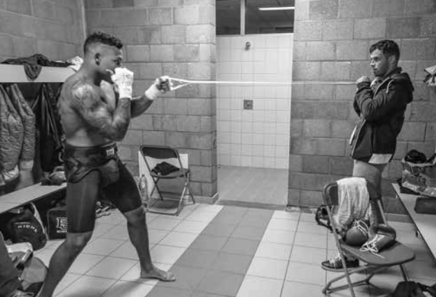 Il y a aussi un ring, un tapis où s’entrainer et des accessoires pour parfaire ses mouvements : sac de frappe, corde à sauter, haltères pour se muscler, etc.