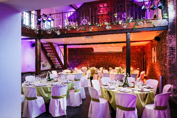 La grange, la plus grande salle, peut accueillir jusqu’à 120 personnes lors d’un dîner assis et jusqu’à 200 personnes pour une réception de type cocktail dinatoire. Par un système de rideaux, on peut la diviser et n’utiliser qu’une partie. Dotée d’une charpente impressionnante, cette belle salle a gardé un cachet authentique et séduit par son côté cosy.