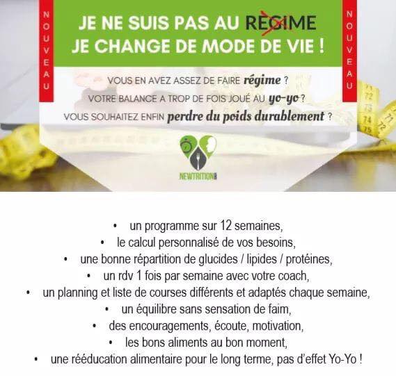 Formée par Newtrition Coach, Sara vous donne les clés pour repartir sur une base saine. Le concept du coaching en nutrition est de reprendre de nouvelles habitudes alimentaires, celles qui resteront dans le temps.