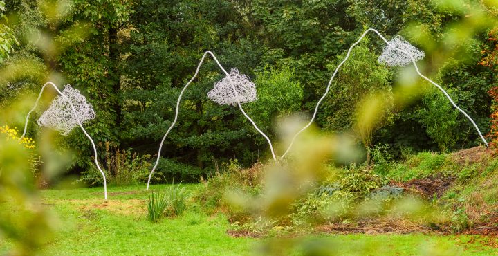 - Skylines | Chloé Coomans : Grâce à ces lignes blanches et légères, la sculpture redessinne un paysage dans le paysage.