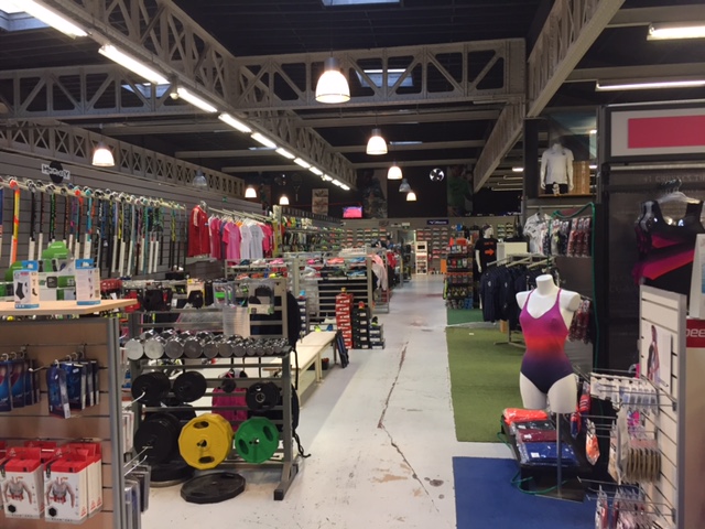 On n’est loin d’un hangar aux allées froides et impersonnelles, c’est réellement un très grand magasin de vêtements et d'équipements de sport, agréable, clair, où tout est ordonné de manière à rendre la visite des lieux conviviale, où chaque secteur a son comptoir et son responsable.