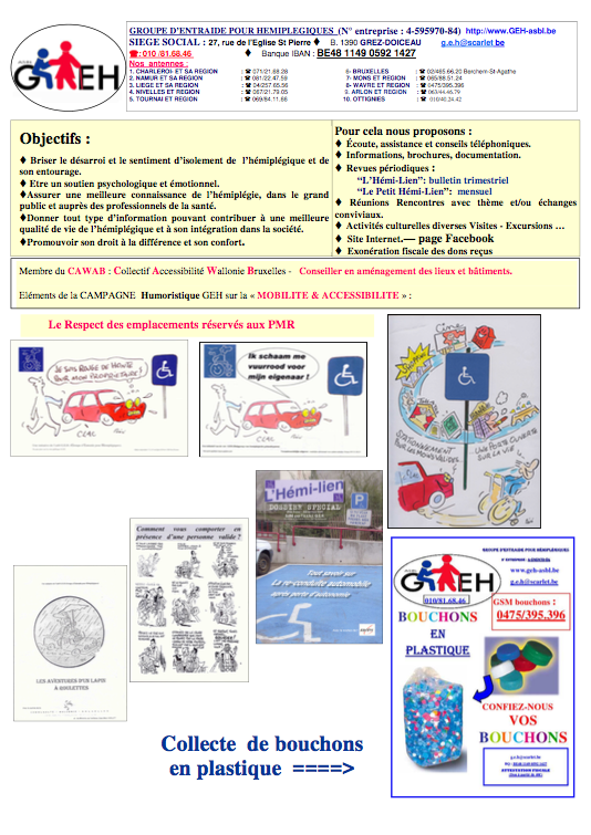 - Organisateur : Le GEH asbl (Groupe d'Entraide pour Hémiplégiques)