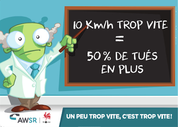 On estime que si tous les automobilistes roulaient 10 km/h au-dessus de la limite légale sur tous les types de route, on enregistrerait une hausse de 50% du nombre de tués ! Le lien entre vitesse excessive et accidents de la route existe donc bel et bien et le Ministre et l’AWSR entendent le rappeler aux usagers de la route.