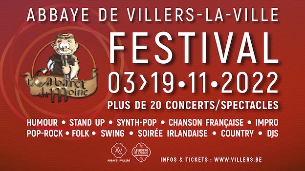 Du 3 novembre au 19 novembre, l’abbaye de Villers et le Bistro de l’Abbaye présentent LE CABARET DU MOINE : une vingtaine de spectacles dans la salle romane, une splendide salle voûtée (et chauffée) du 13e siècle située juste à côté du Bistro de l’Abbaye.
