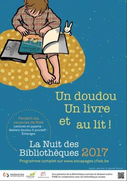 La Nuit des Bibliothèques 2017, un doudou, un livre et au lit ! est la sixième édition d'une opération proposée par la Bibliothèque centrale du Brabant wallon (FWB) et les bibliothèques locales du réseau de lecture publique du Brabant wallon.