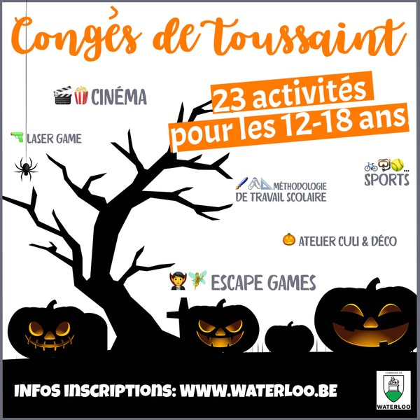Activités jeunesse du congé de Toussaint 2021 : du samedi 30 octobre au samedi 6 novembre 2021 inclus.