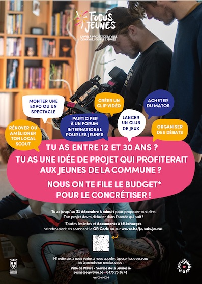 La nouvelle édition de l’appel à projets Focus Jeunes sera lancée le 1 novembre 2021. Tu as jusqu’au 31 décembre 2021 pour nous soumettre ton projet à réaliser en 2022.