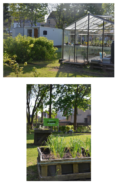 Deux containers aménagés y résident désormais, l’un comme lieu de stockage pour le matériel de jardinage, l’autre comme local convivial équipé d’une petite cuisine, de tables et de chaises.